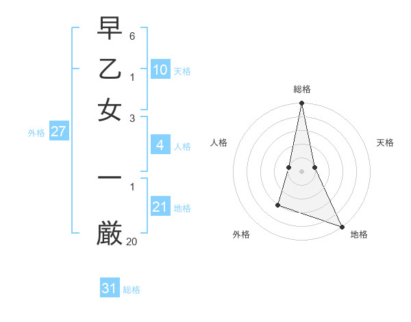 早乙女 一厳さんの総格は31画の5点