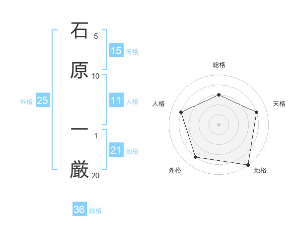 石原 一厳さんの地格は21画の5点!