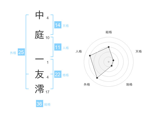 中庭 一友澪さんの地格は22画の1点!