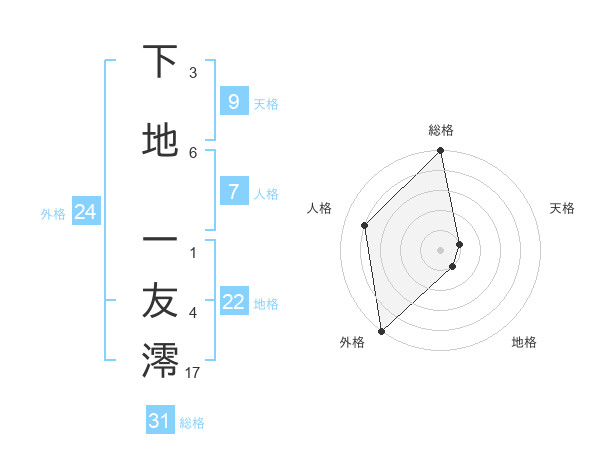 下地 一友澪さんを姓名の画数から五運を鑑定