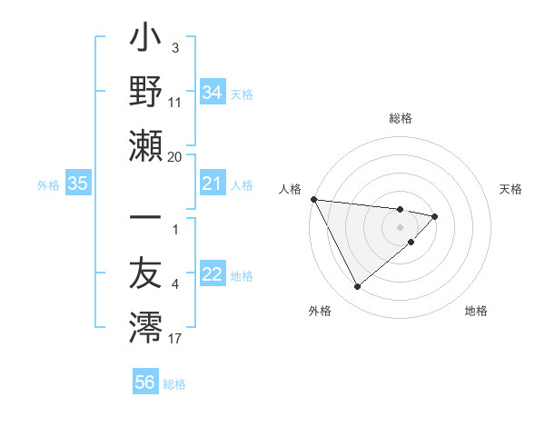 小野瀬 一友澪さんの人格は21画の5点