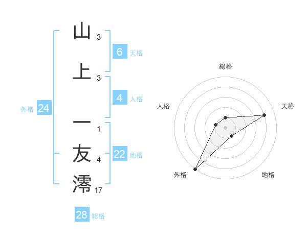 山上 一友澪さんの外格は24画の5点!