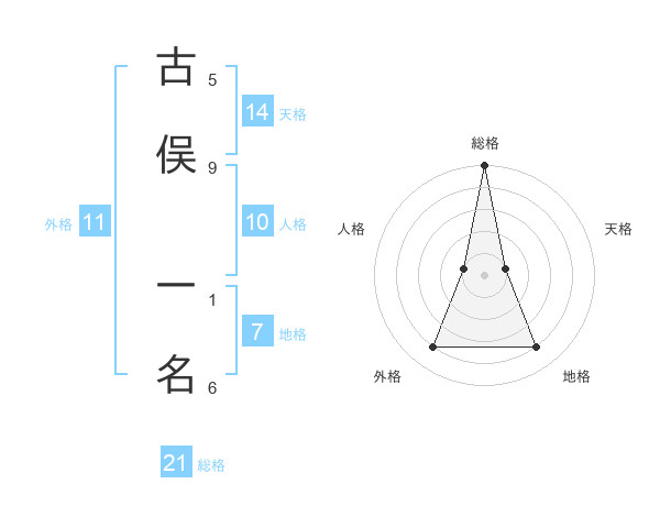 古俣 一名さんの地格は7画の4点!