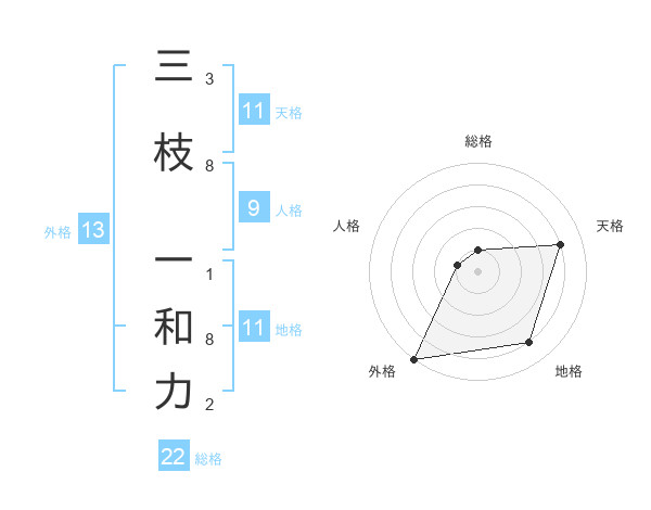 三枝 一和力さんの総格は22画の1点!