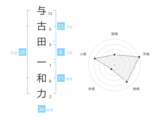 与古田 一和力さんを姓名の画数から五運を鑑定