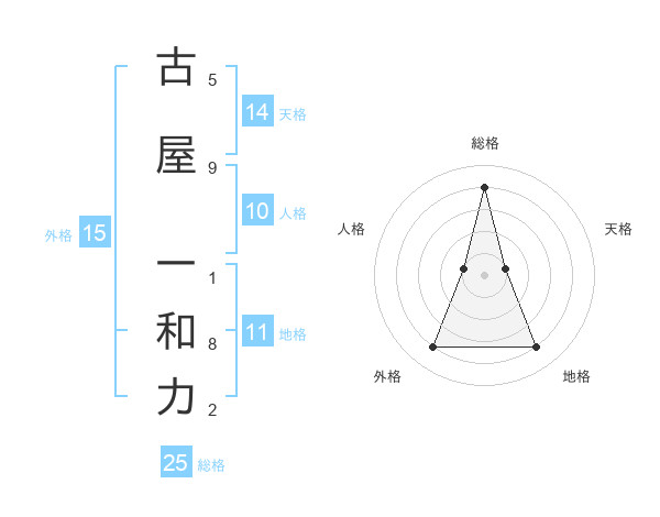 古屋 一和力さんを姓名の画数から五運を鑑定