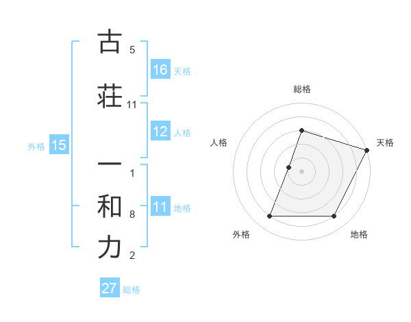 古荘 一和力さんを姓名の画数から五運を鑑定