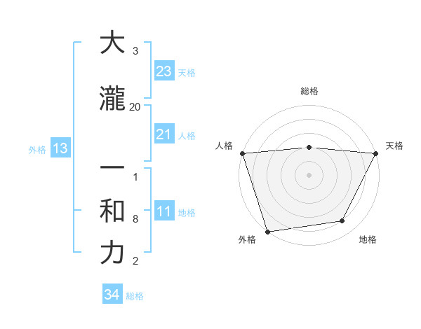 大瀧 一和力さんを姓名の画数から五運を鑑定