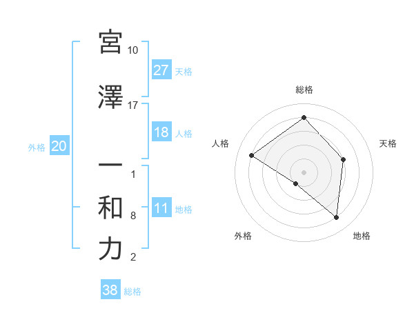 宮澤 一和力さんを姓名の画数から五運を鑑定