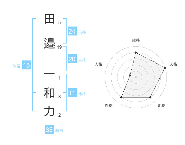 田邉 一和力さんの天格は24画の5点!