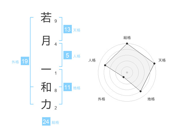 若月 一和力さんの天格は13画の5点!