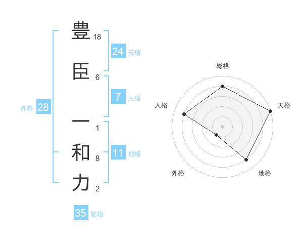 豊臣 一和力さんを姓名の画数から五運を鑑定
