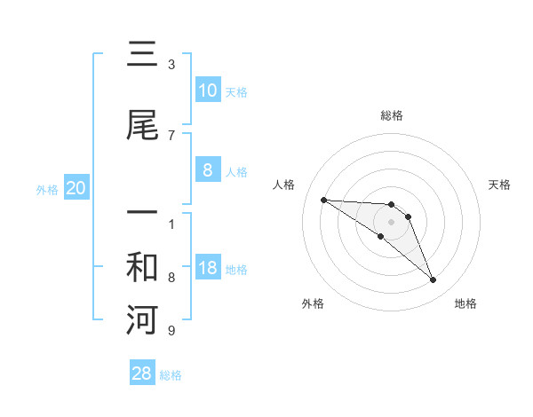 三尾 一和河さんを姓名の画数から五運を鑑定
