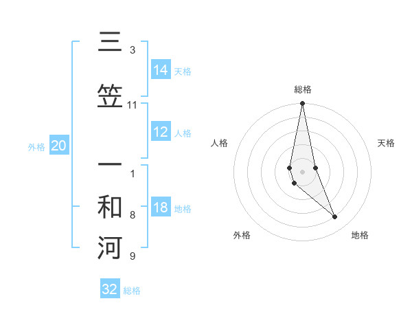 三笠 一和河さんを姓名の画数から五運を鑑定