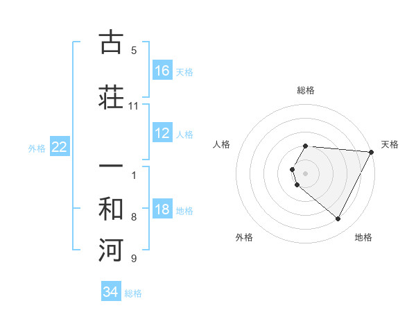 古荘 一和河さんを姓名の画数から五運を鑑定