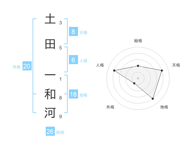土田 一和河さんの天格は8画の4点