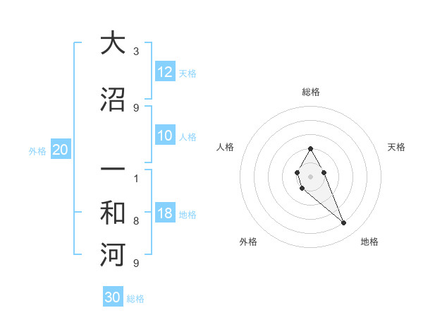 大沼 一和河さんの総格は30画の2点!