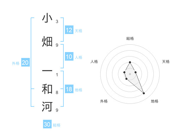 小畑 一和河さんを姓名の画数から五運を鑑定