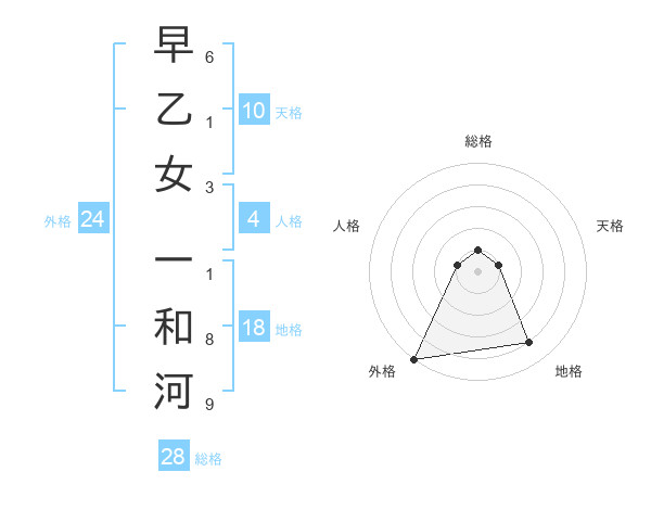 早乙女 一和河さんの外格は24画の5点