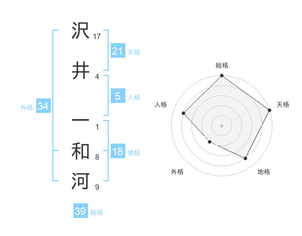沢井 一和河さんを姓名の画数から五運を鑑定