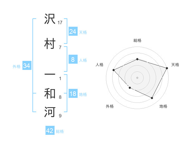 沢村 一和河さんを姓名の画数から五運を鑑定