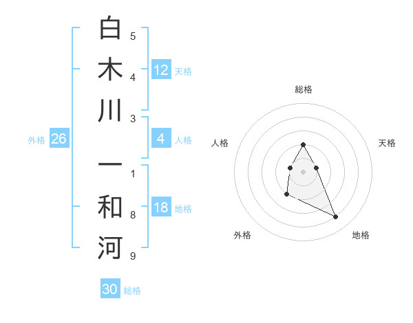 白木川 一和河さんの総格は30画の2点!