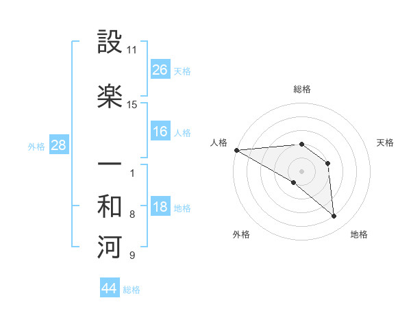 設楽 一和河さんを姓名の画数から五運を鑑定