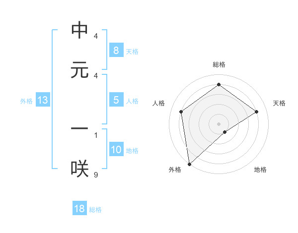 中元 一咲さんの外格は13画の5点!