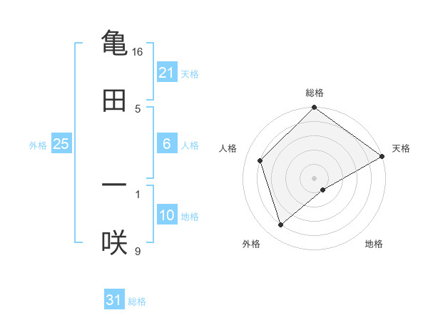 亀田 一咲さんの天格は21画の5点!