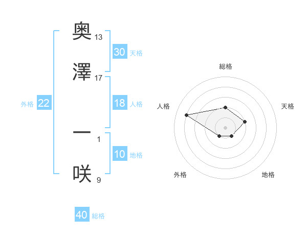 奥澤 一咲さんを姓名の画数から五運を鑑定