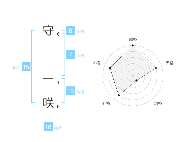 守 一咲さんの総格は16画の5点!