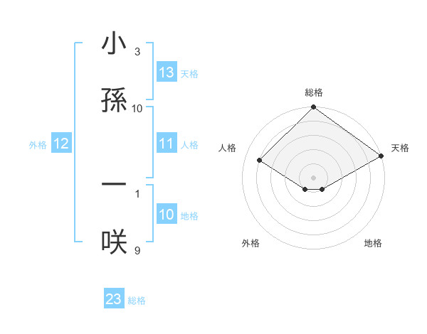 小孫 一咲さんを姓名の画数から五運を鑑定