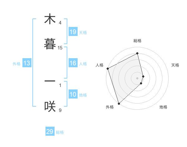 木暮 一咲さんを姓名の画数から五運を鑑定