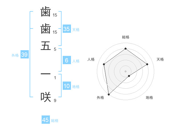 歯歯五 一咲さんの外格は39画の5点!