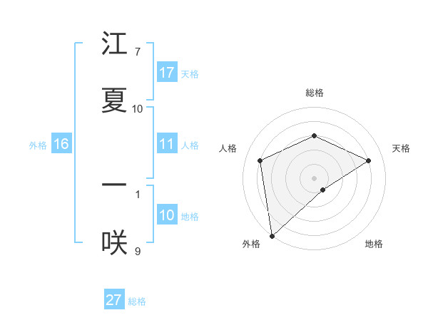 江夏 一咲さんを姓名の画数から五運を鑑定
