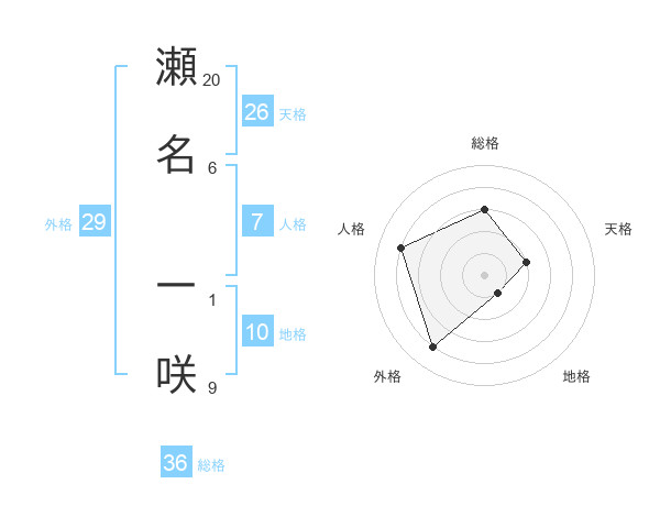瀬名 一咲さんを姓名の画数から五運を鑑定