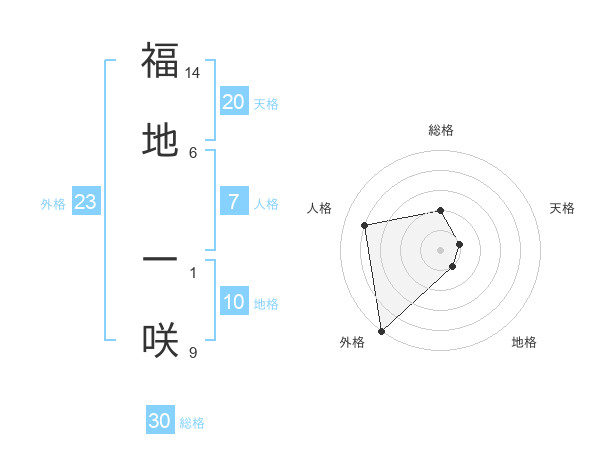 福地 一咲さんの外格は23画の5点!