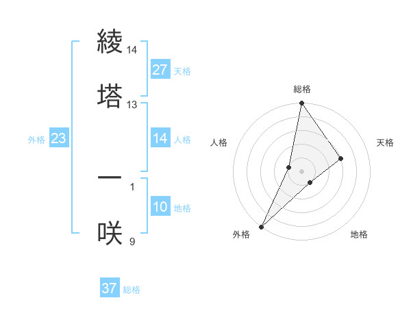 綾塔 一咲さんを姓名の画数から五運を鑑定