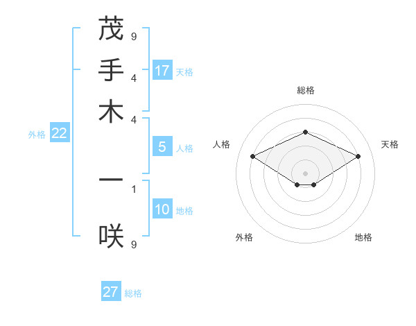 茂手木 一咲さんの天格は17画の4点!
