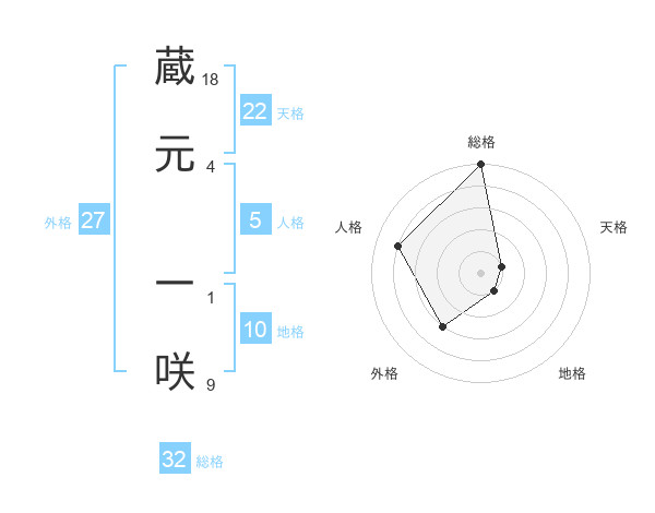 蔵元 一咲さんの総格は32画の5点!