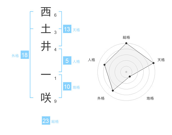 西土井 一咲さんを姓名の画数から五運を鑑定