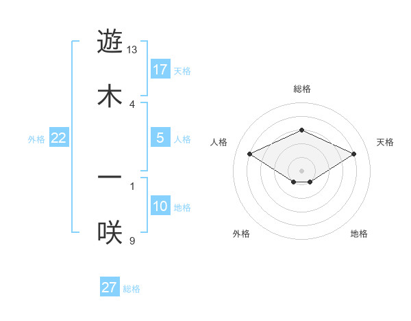 遊木 一咲さんの総格は27画の3点!