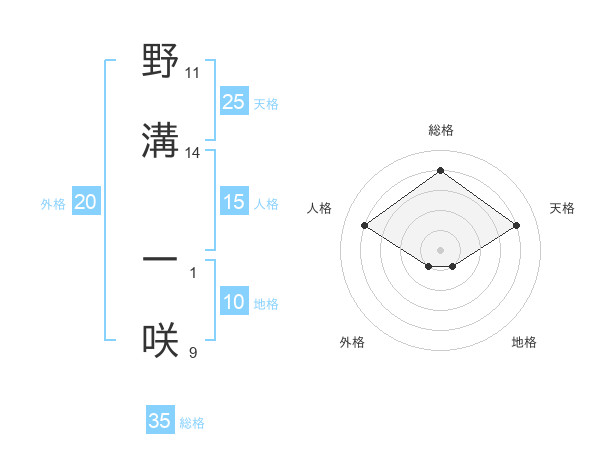 野溝 一咲さんの総格は35画の4点!