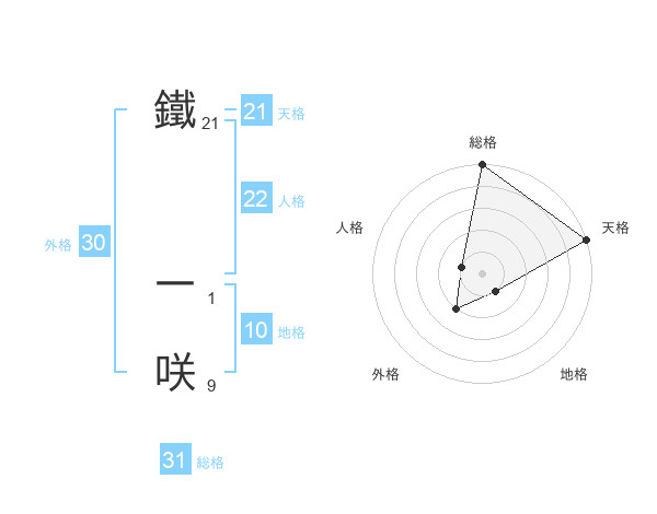 鐵 一咲さんの総格は31画の5点!