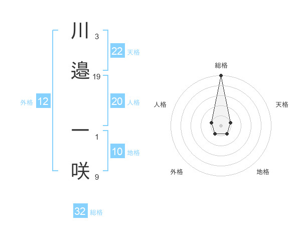 川邉 一咲さんの総格は32画の5点!