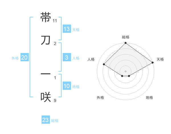 帯刀 一咲さんを姓名の画数から五運を鑑定