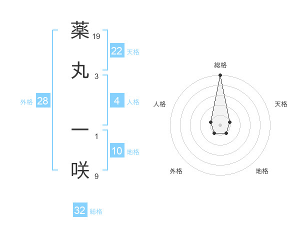 薬丸 一咲さんの総格は32画の5点!