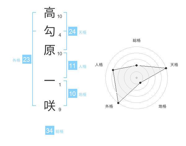 高勾原 一咲さんを姓名の画数から五運を鑑定