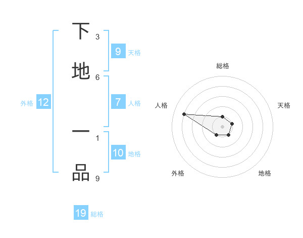 下地 一品さんの総格は19画の1点!