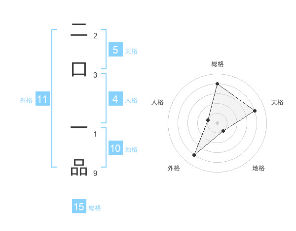 二口 一品さんの総格は15画の4点!